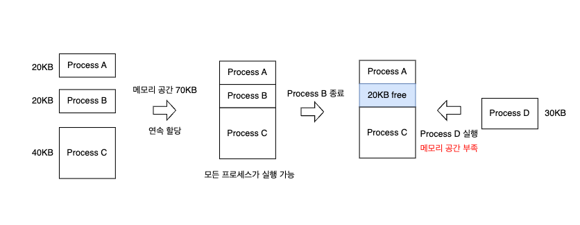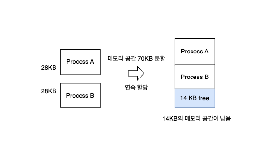 - 프로세스에 연속적인 메모리 공간을 할당하는 방법을 말합니다.