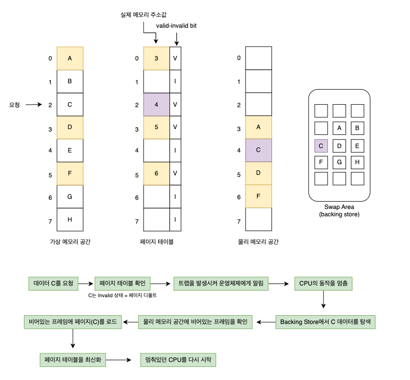 # 요구 페이징을 통해 페이지 폴트를 처리하는 과정