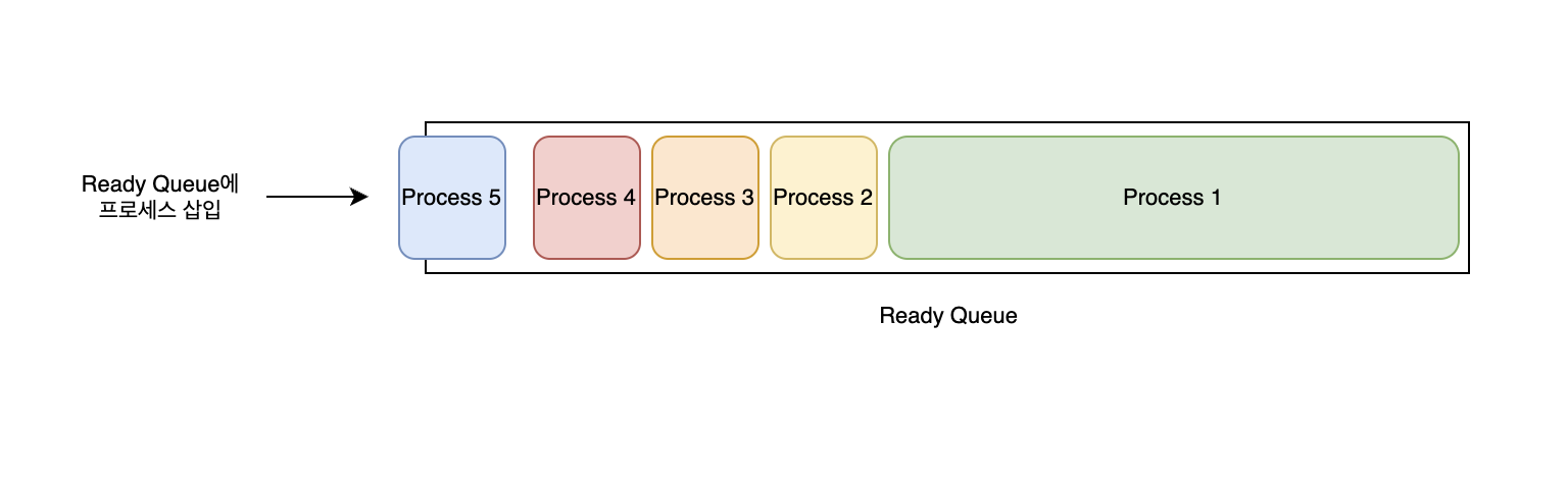 - 만약 2개의 프로세스가 우선순위가 동일하다면 먼저 Ready Queue에 들어온 순서대로 처리합니다.